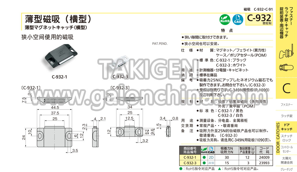 8219彩票网备 注·吸附力升至25N的钕磁铁产品也可以制作。敬请垂询。(C-932-3)