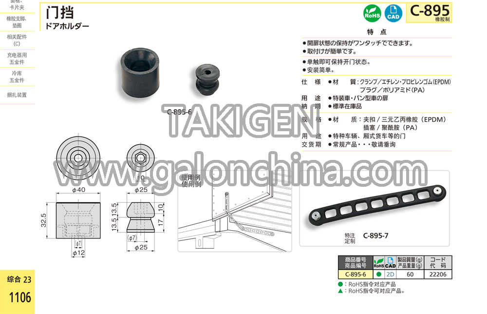 规 格·材 质:夹扣/三元乙丙橡胶(EPDM)