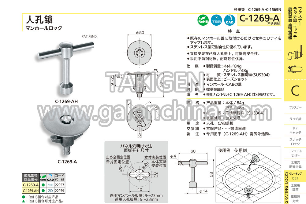 备 注·专用把手(C-1269-AH)需另外选购。
