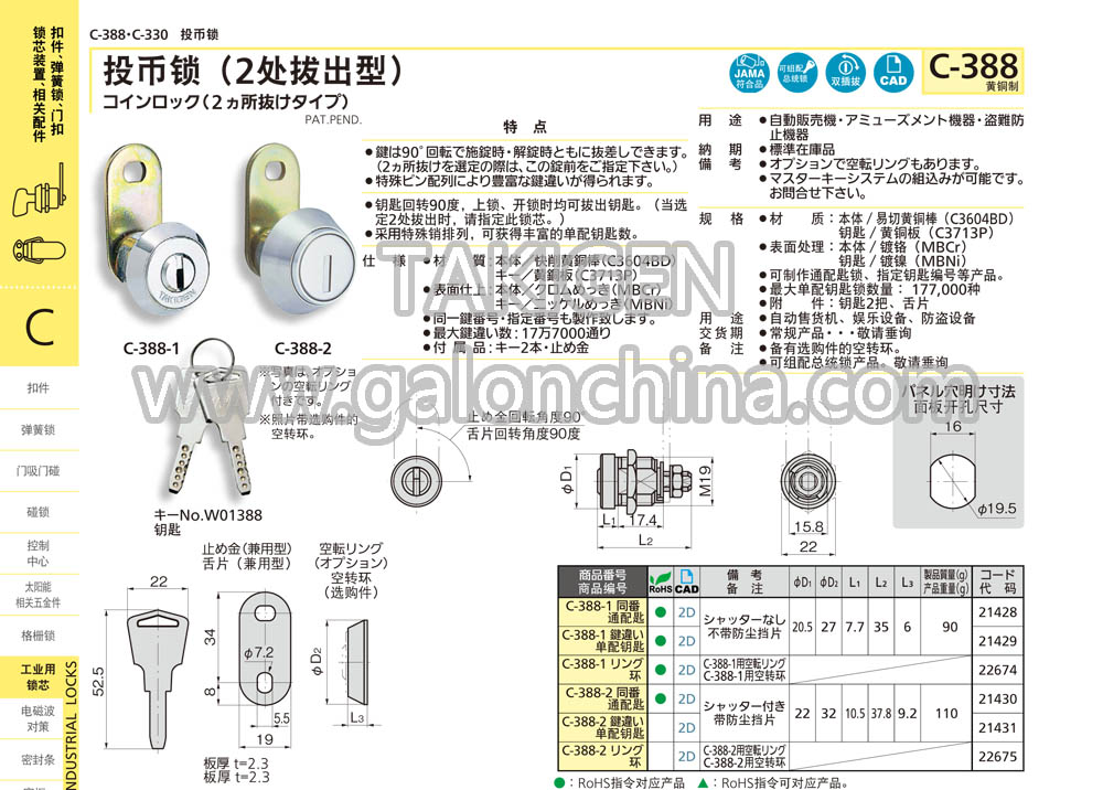首页 > 产品 > 扣件、弹簧锁、门扣、锁芯装置、相关配件 > 工业用锁芯
