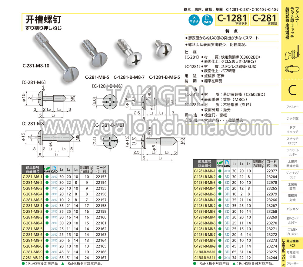 [C-281]·材 质:易切黄铜棒(C3602BD)