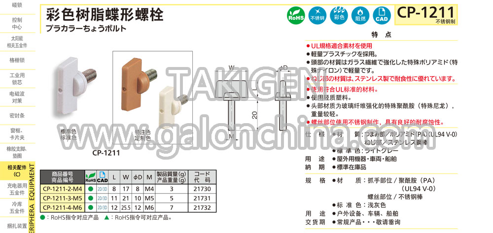 规 格·材 质:抓手部位/聚酰胺(PA)(UL94 V-0)