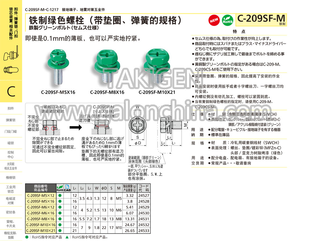 铁制绿色螺栓(带垫圈、弹簧的规格)