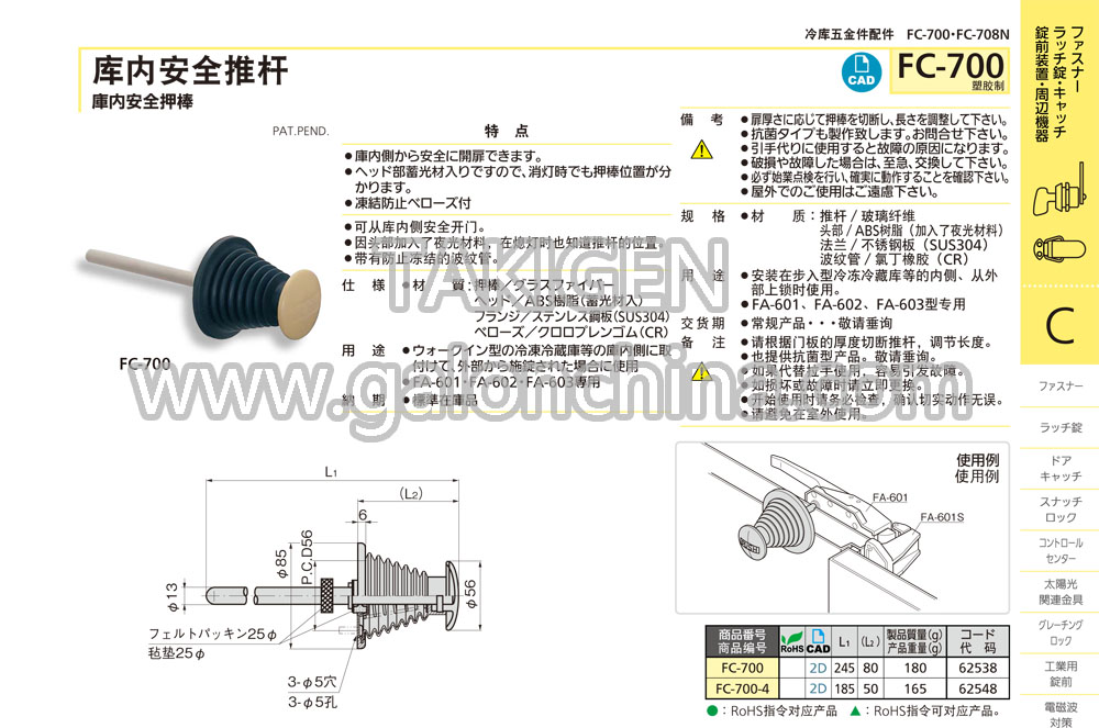 8219彩票网用 途·安装在步入型冷冻冷藏库等的内侧、从外部上锁时使用。