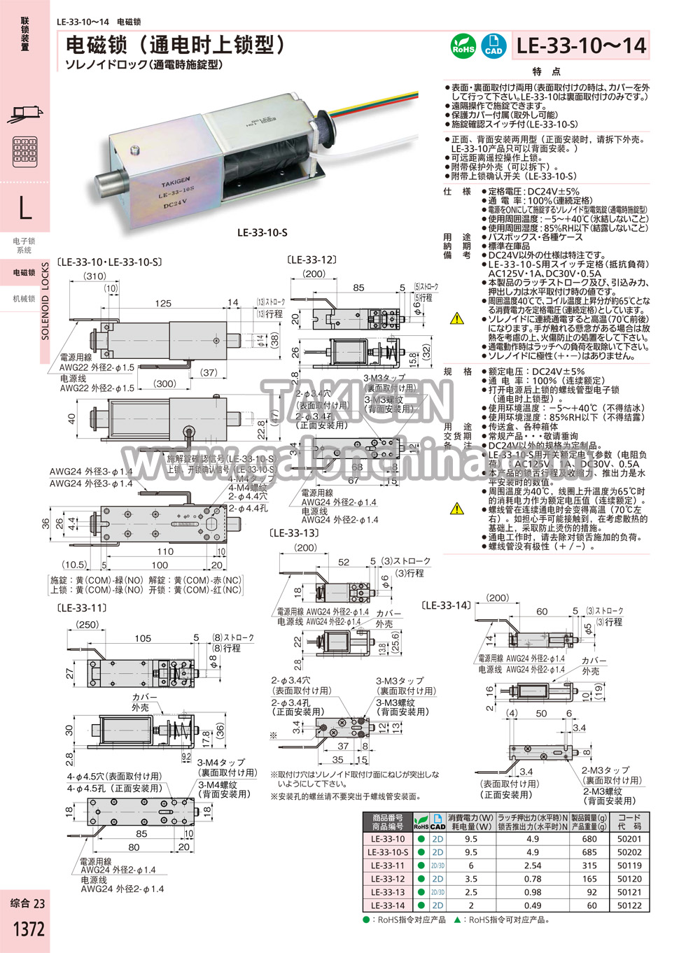 ·本产品的锁舌行程及收缩力、推出力是水平安装时的数值。