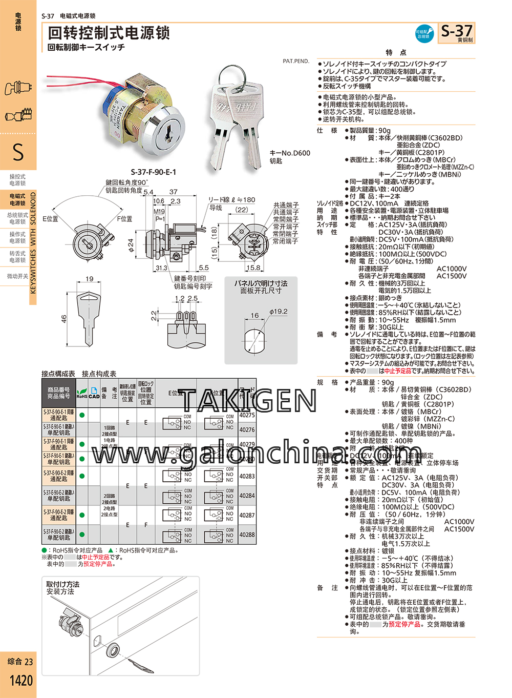 备 注·向螺线管通电时,可以在E位置~F位置的范围内进行回转。