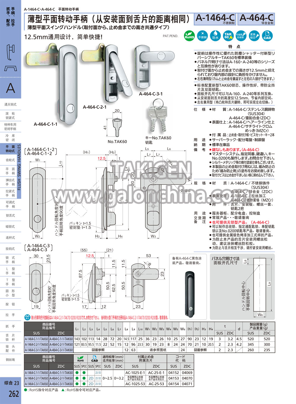 薄型平面转动手柄(从安装面到舌片的距离相同)