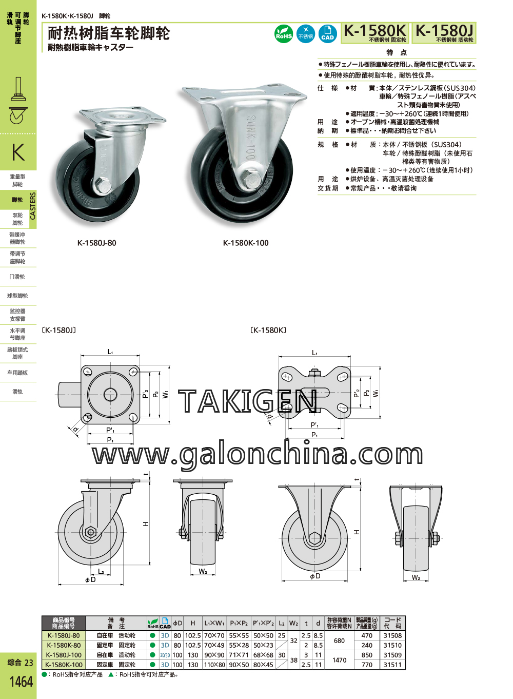耐热树脂车轮脚轮