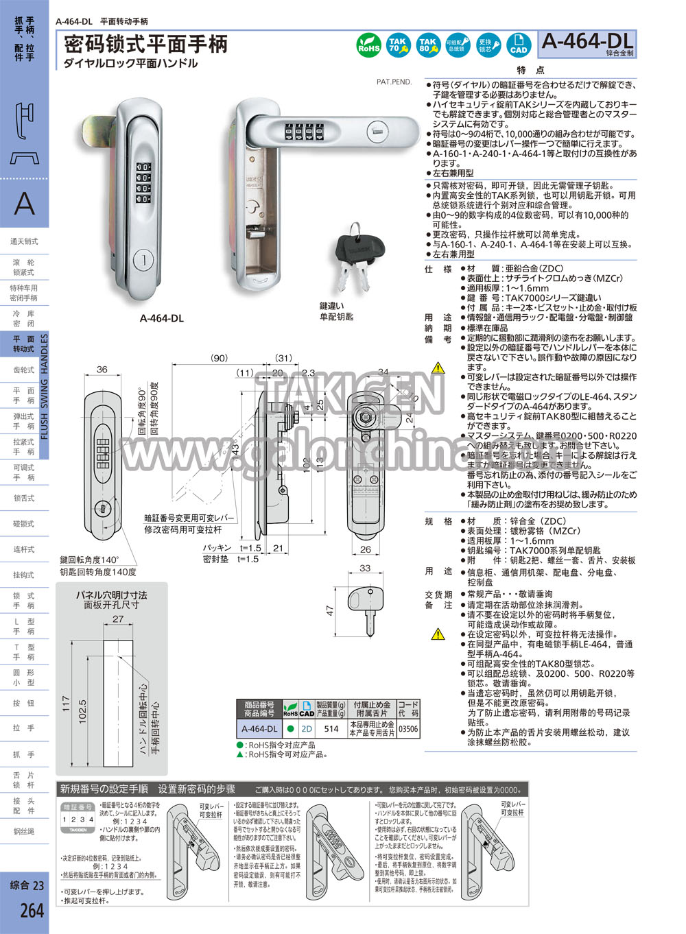 ·在同型产品中,有电磁锁手柄LE-464,普通型手柄A-464。