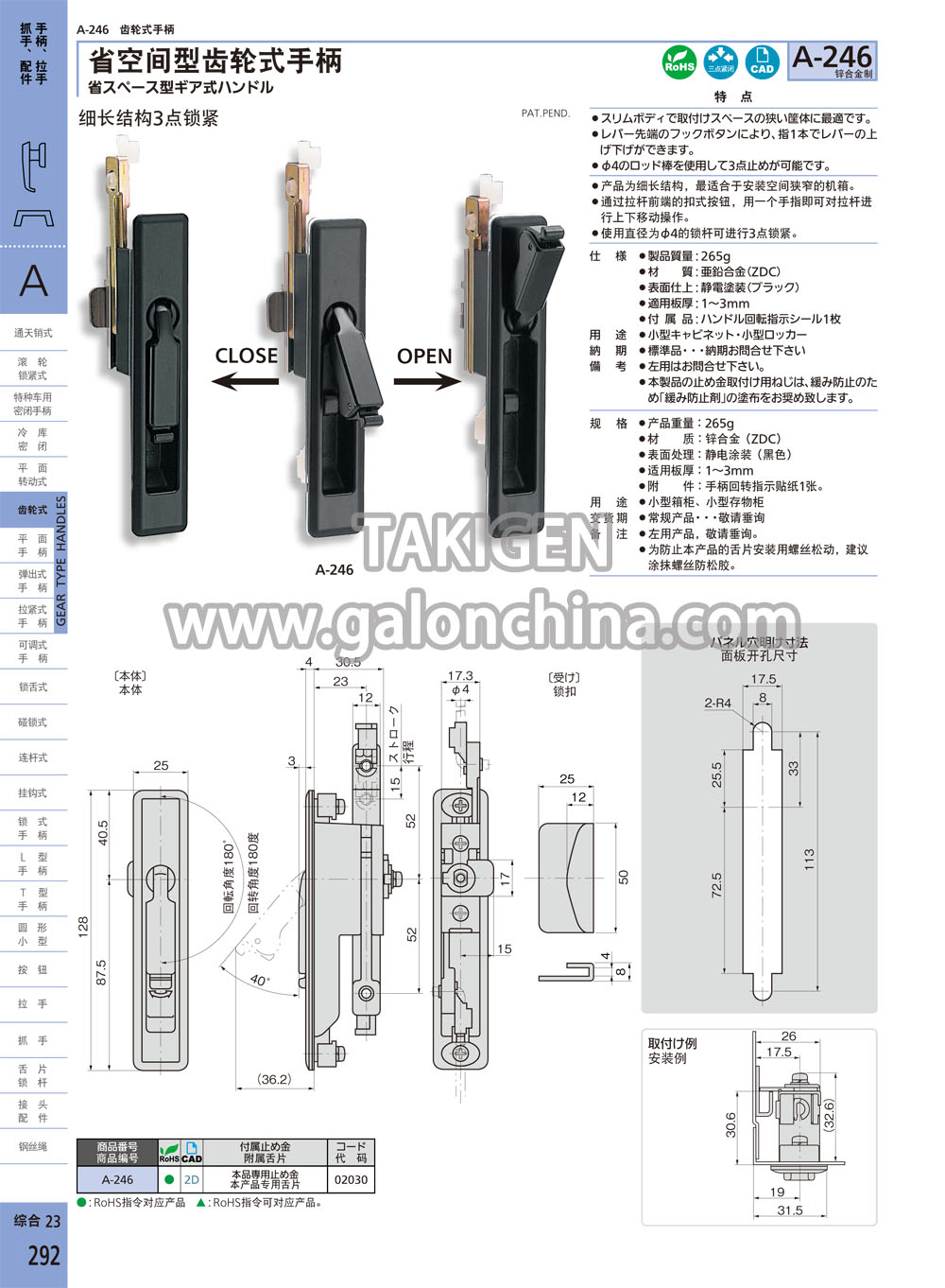 FA·A手柄、拉手、旋钮、配件8219彩票网TAKIGEN 解决方案