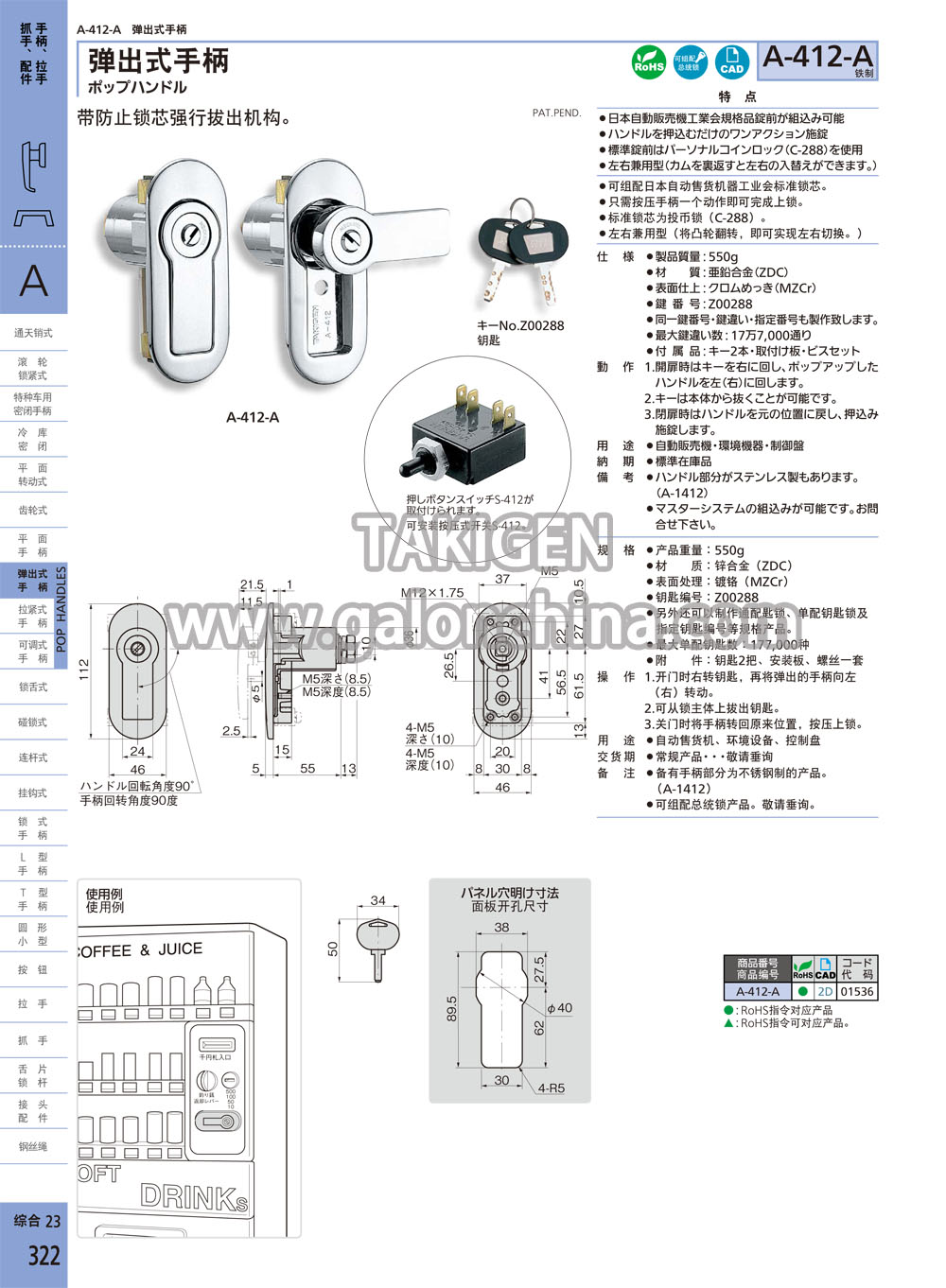 首页 > 产品 > 手柄、拉手、旋钮、配件 > 弹出式手柄(自动售货机手柄)