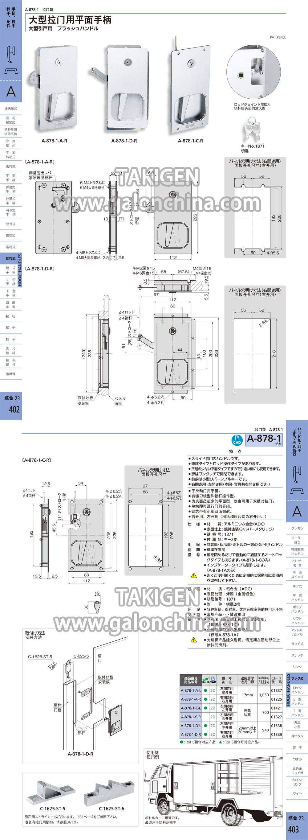 备 注·也有闭门后自动上锁的自动锁类型。(仅限A-878-1-C)