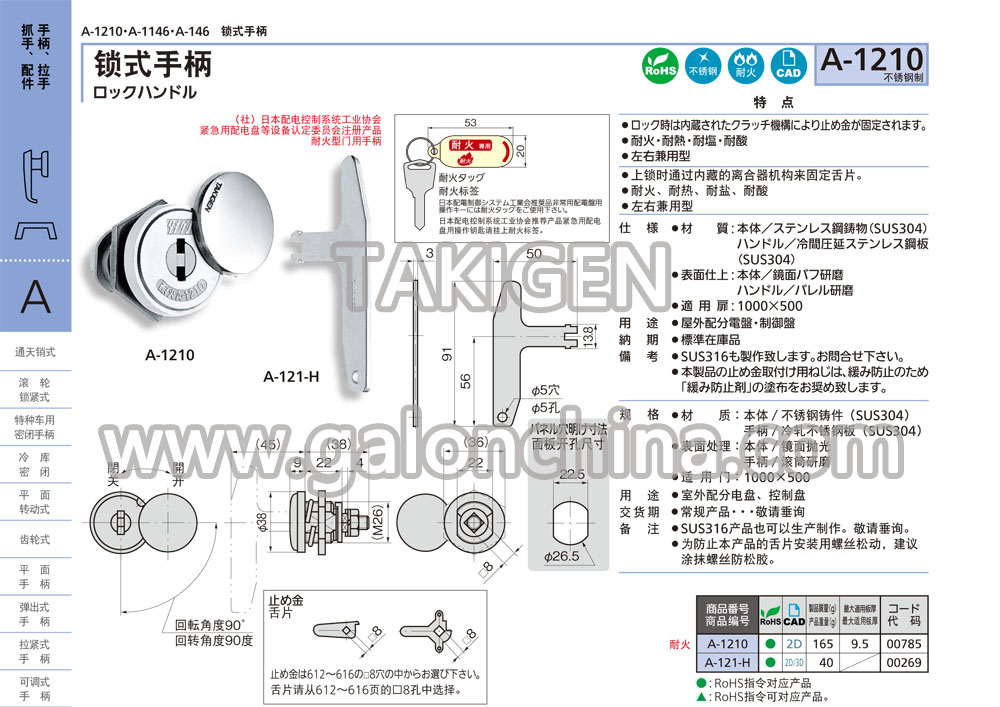 FA·A手柄、拉手、旋钮、配件TAKIGEN 解决方案