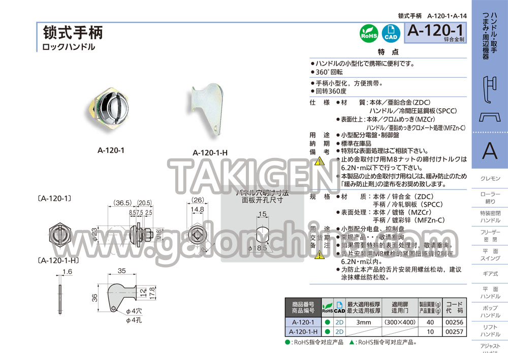 FA·A手柄、拉手、旋钮、配件TAKIGEN 解决方案