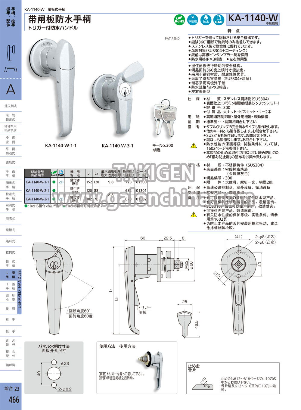 FA·A手柄、拉手、旋钮、配件8219彩票网TAKIGEN 解决方案