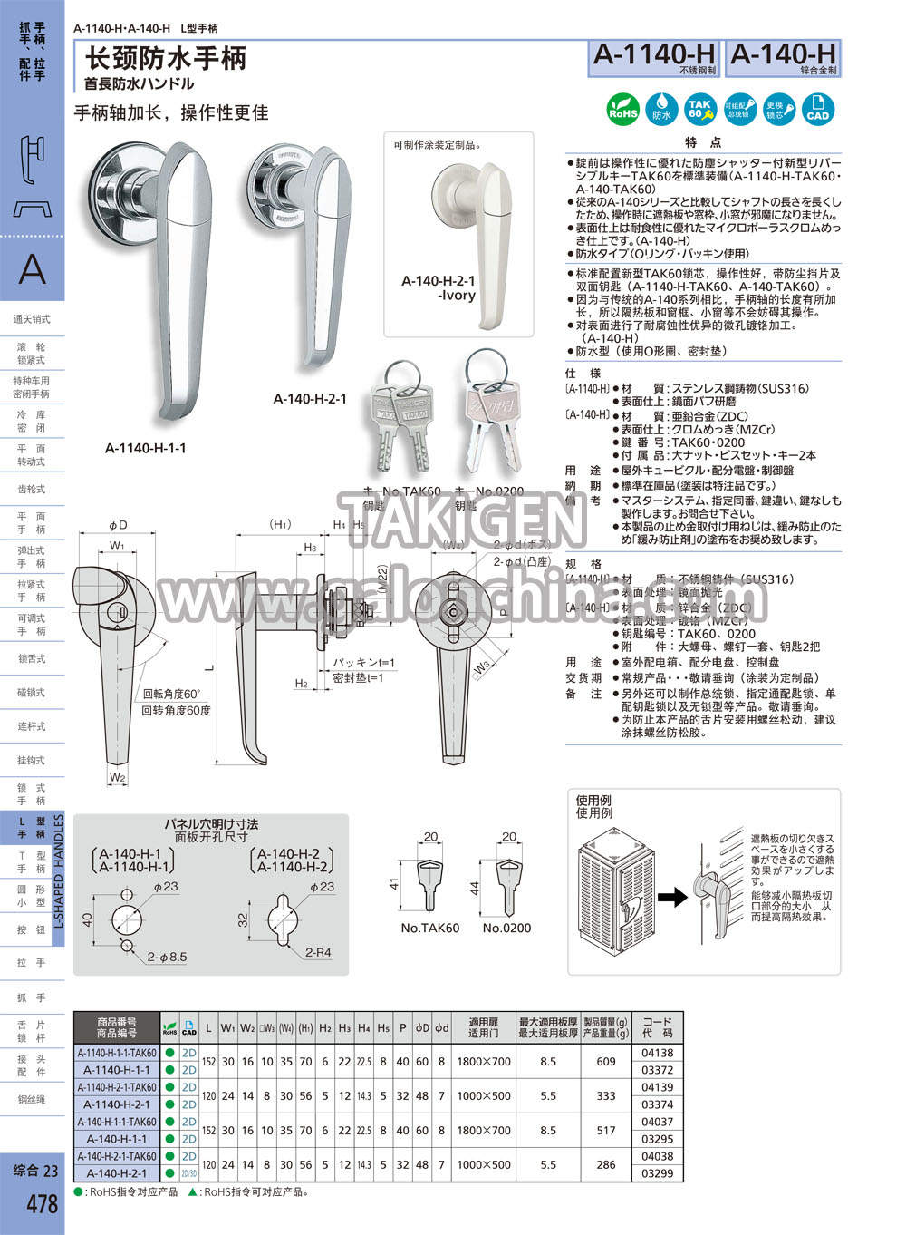 FA·A手柄、拉手、旋钮、配件TAKIGEN 解决方案