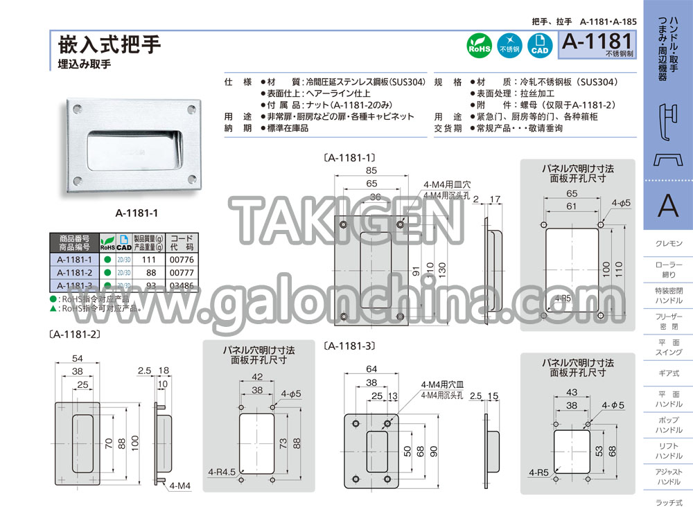 规 格·材 质:冷轧不锈钢板(SUS304)
