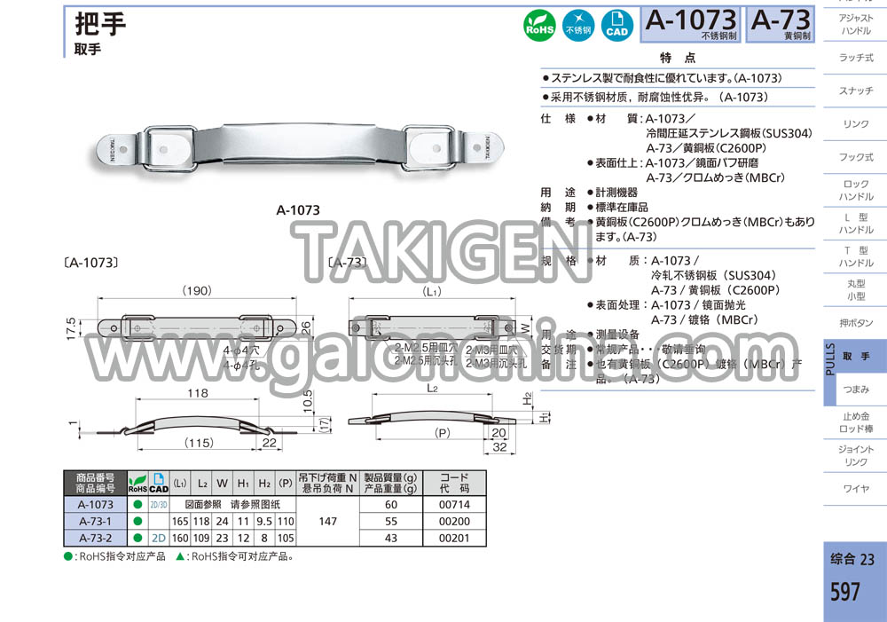 备 注·也有黄铜板(C2600P)镀铬(MBCr)产品。(A-73)