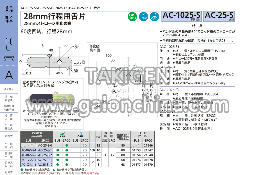 FA·A手柄、拉手、旋钮、配件TAKIGEN 解决方案