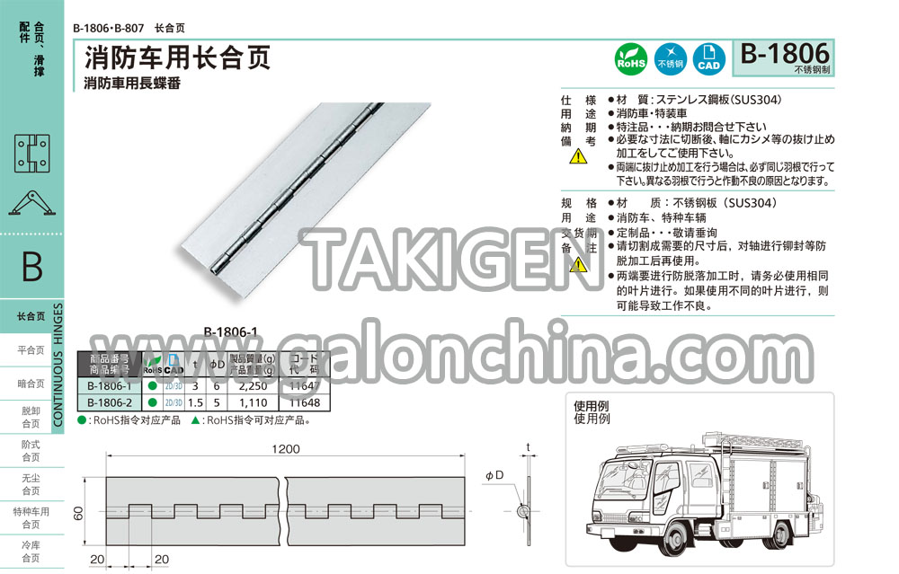 消防车用长合页