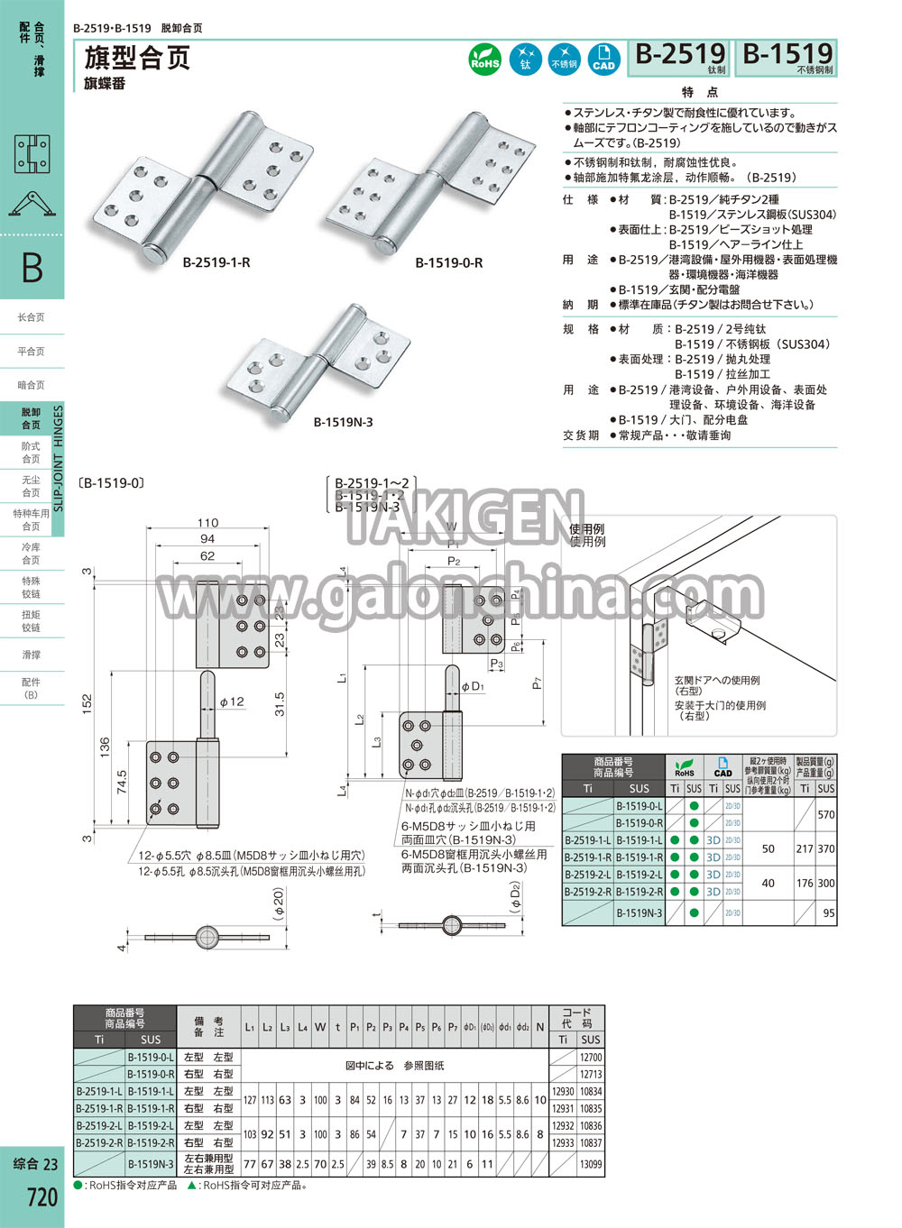 规 格·材 质:B-2519/2号纯钛