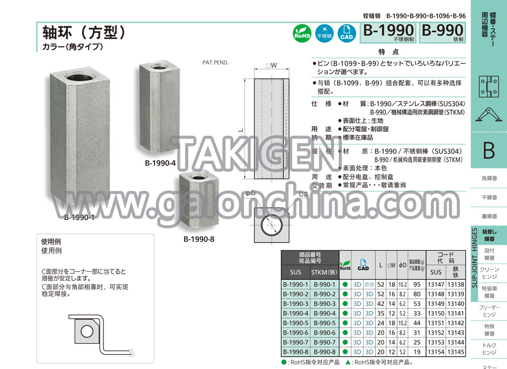 规 格·材 质:B-1990/不锈钢棒(SUS304)
