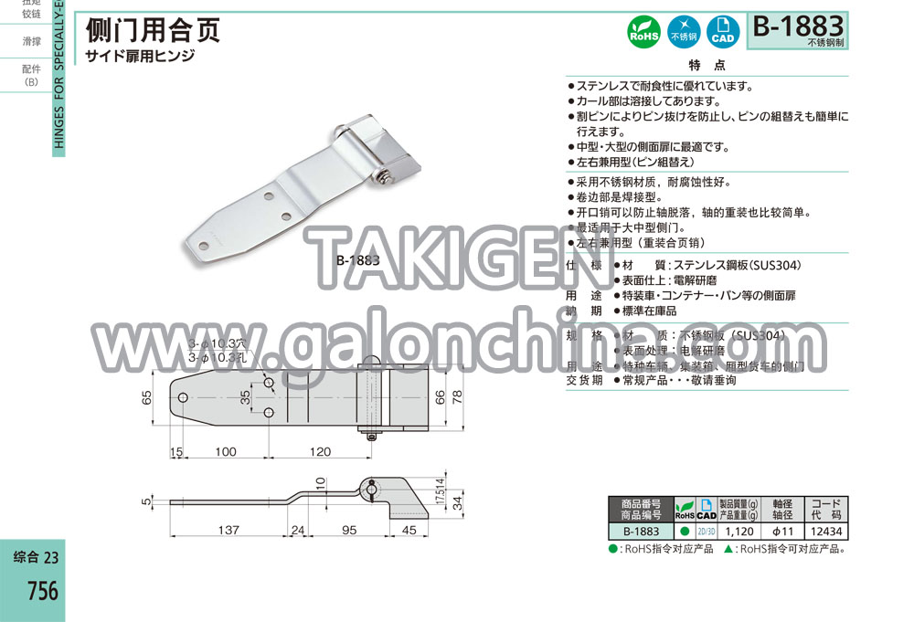 首页 > 产品 > 合页、门撑、配件 > 特种车用合页
