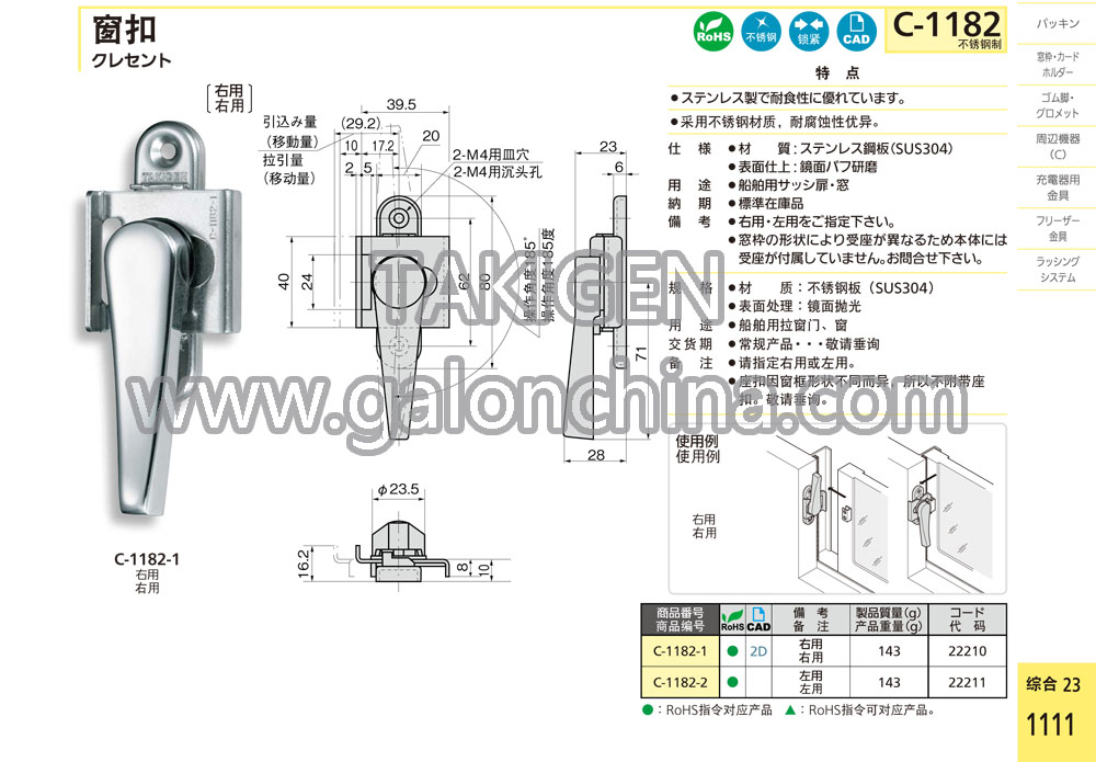 ·座扣因窗框形状不同而异,所以不附带座扣。敬请垂询。