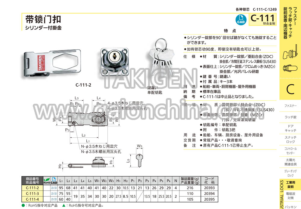 规 格·材 质:圆筒锁部/锌合金(ZDC)