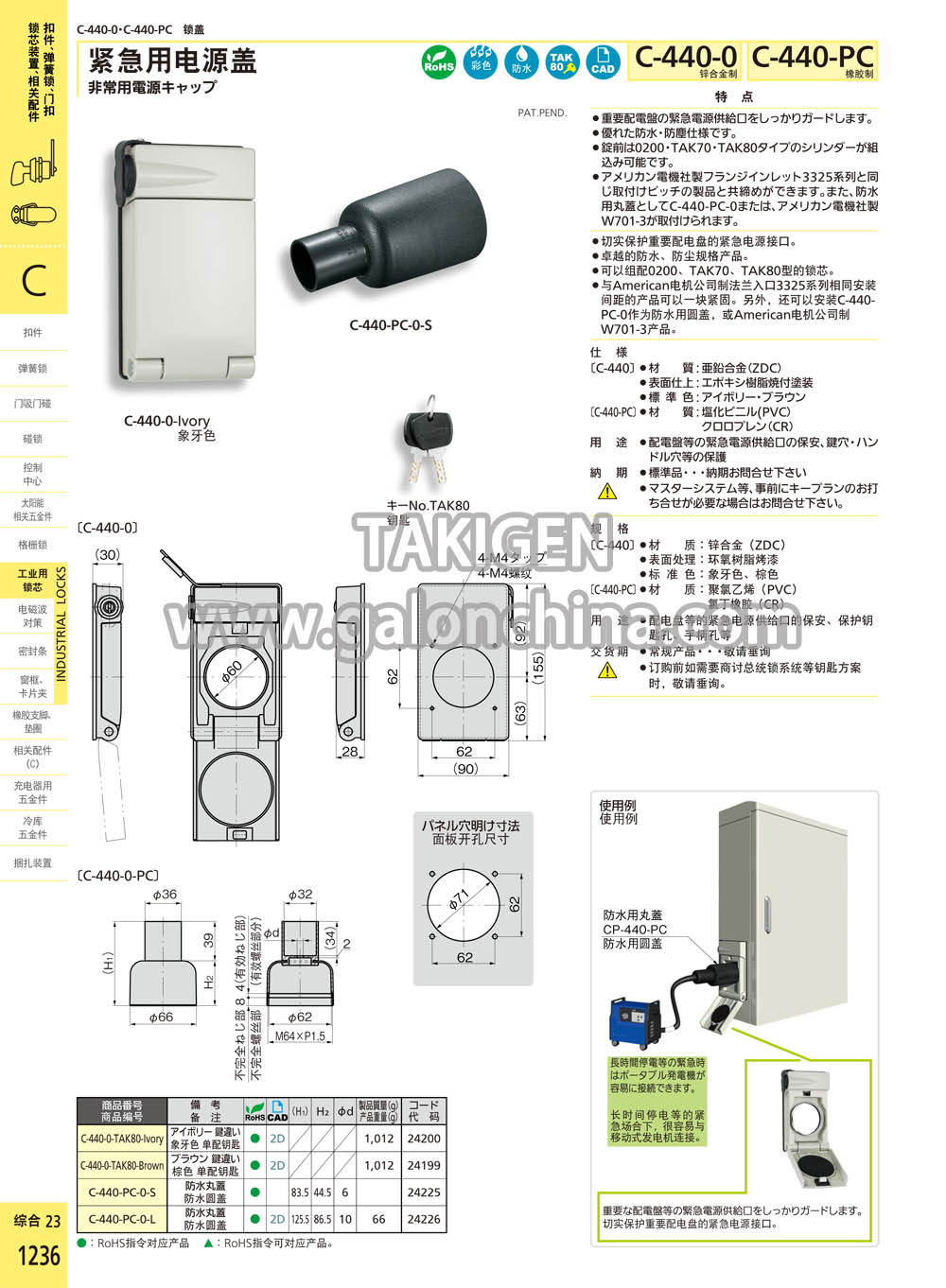 用 途·配电盘等的紧急店员供给口的保安、保护钥匙孔、手柄孔等
