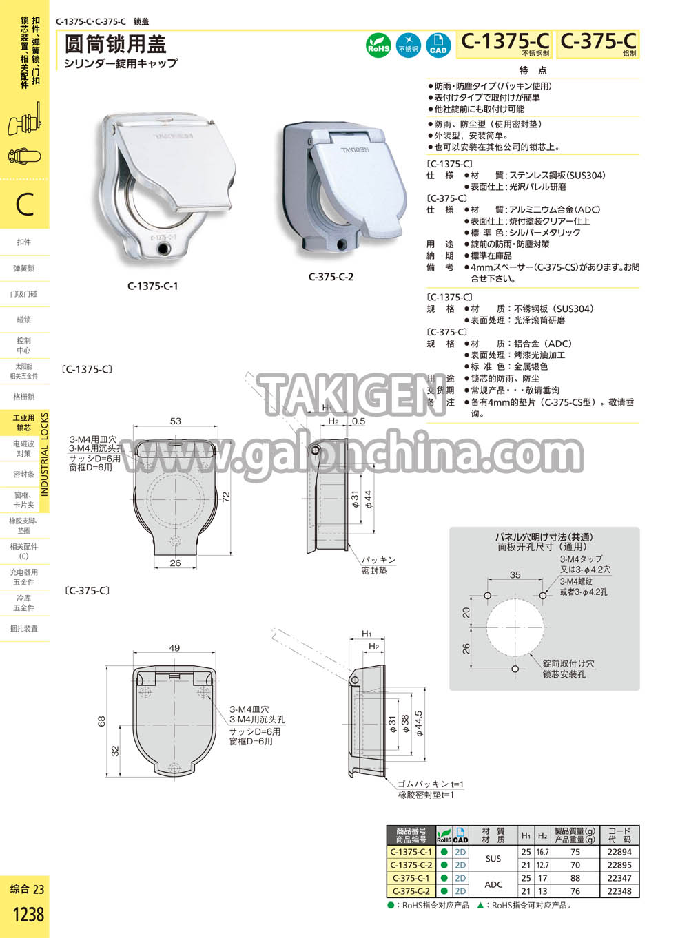 备 注·备有4mm的垫片(C-375-CS型)。敬请垂询。