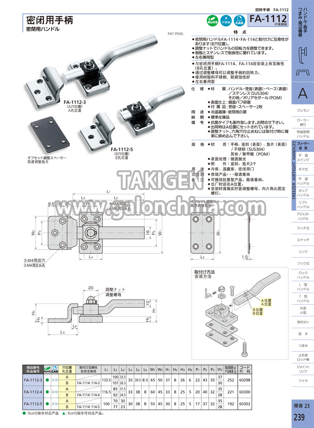 FA·A手柄、拉手、旋钮、配件TAKIGEN 解决方案