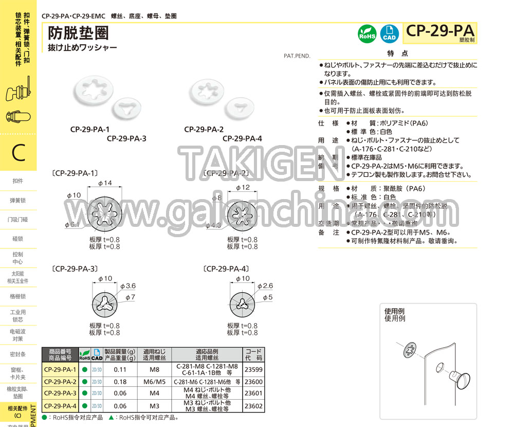 用 途·用于螺丝、螺栓、坚固件的防松脱(A-176、C-281、C-210等)