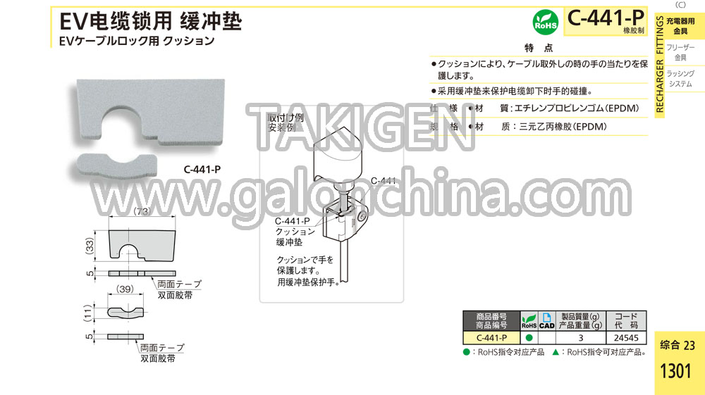 EV电缆锁用缓冲垫