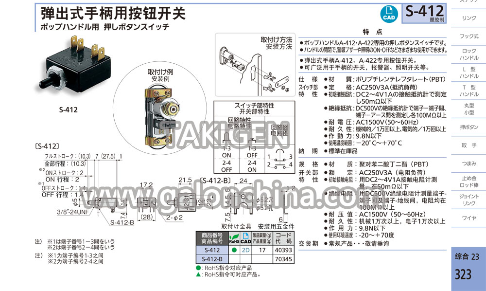 弹出式手柄用按钮开关