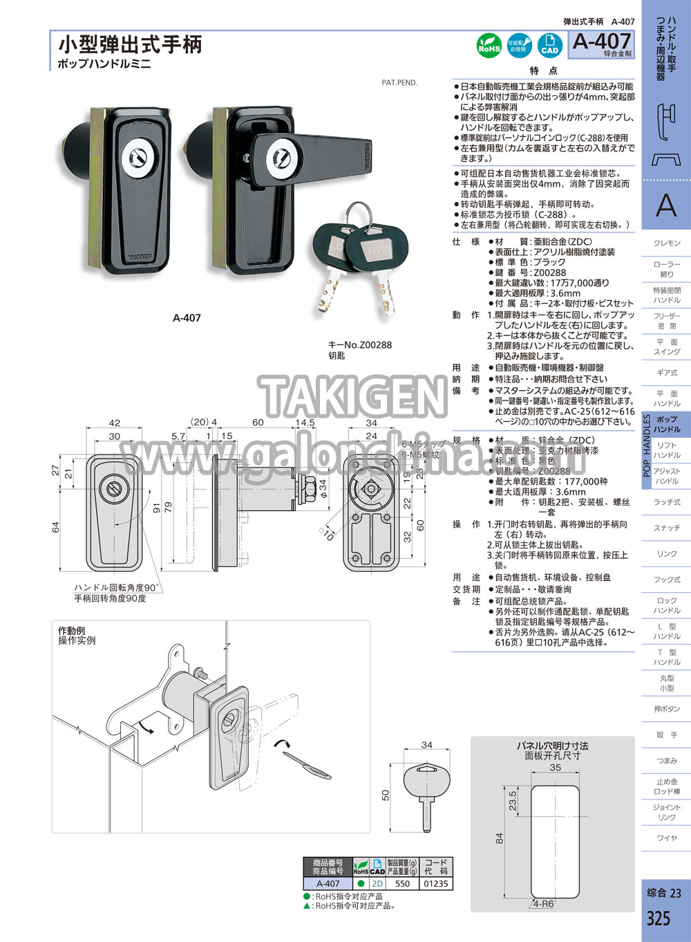 FA·A手柄、拉手、旋钮、配件TAKIGEN 解决方案