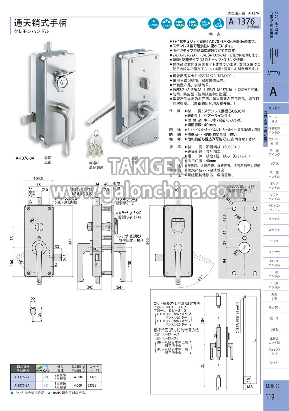 8219彩票网 ·附件:钥匙3把、锁芯(C-375-X)