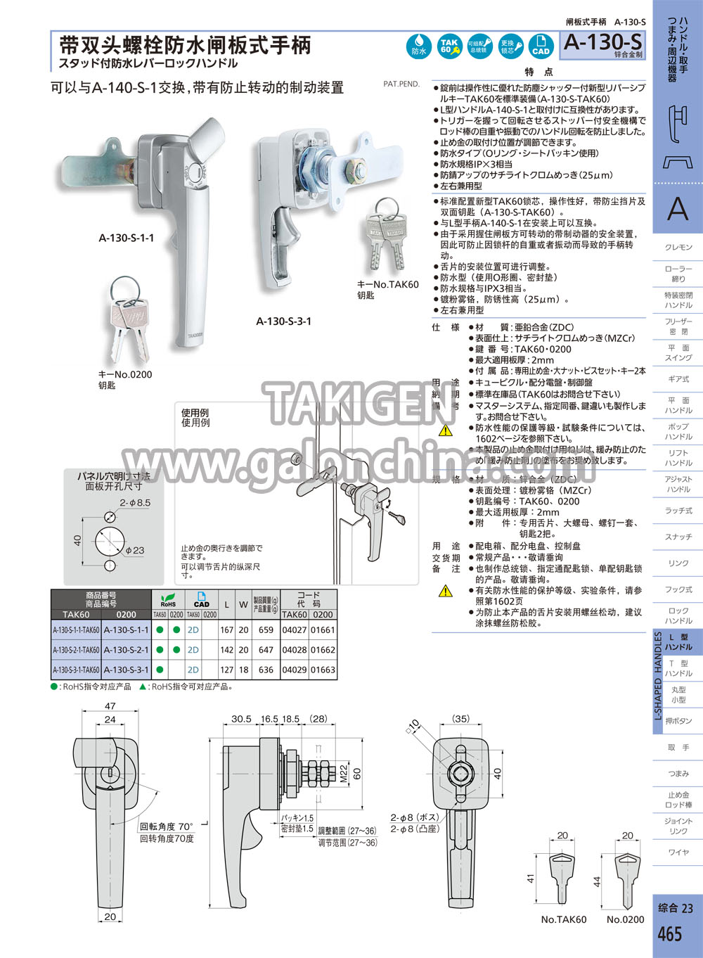 FA·A手柄、拉手、旋钮、配件TAKIGEN 解决方案