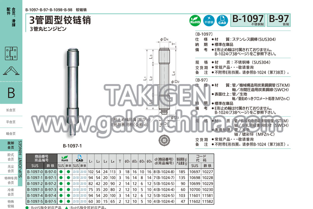 8219彩票网备 注·不附带E形挡圈。请参照B-1024.