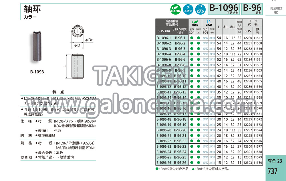 规 格·材 质:B-1096/不锈钢棒(SUS304)