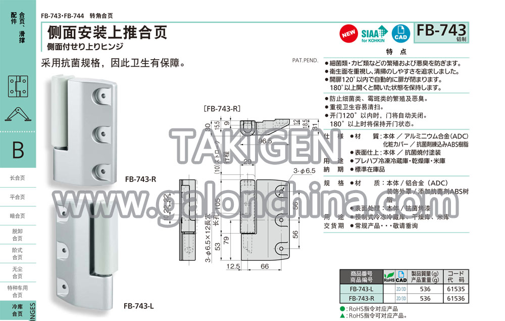 侧面安装上推合页